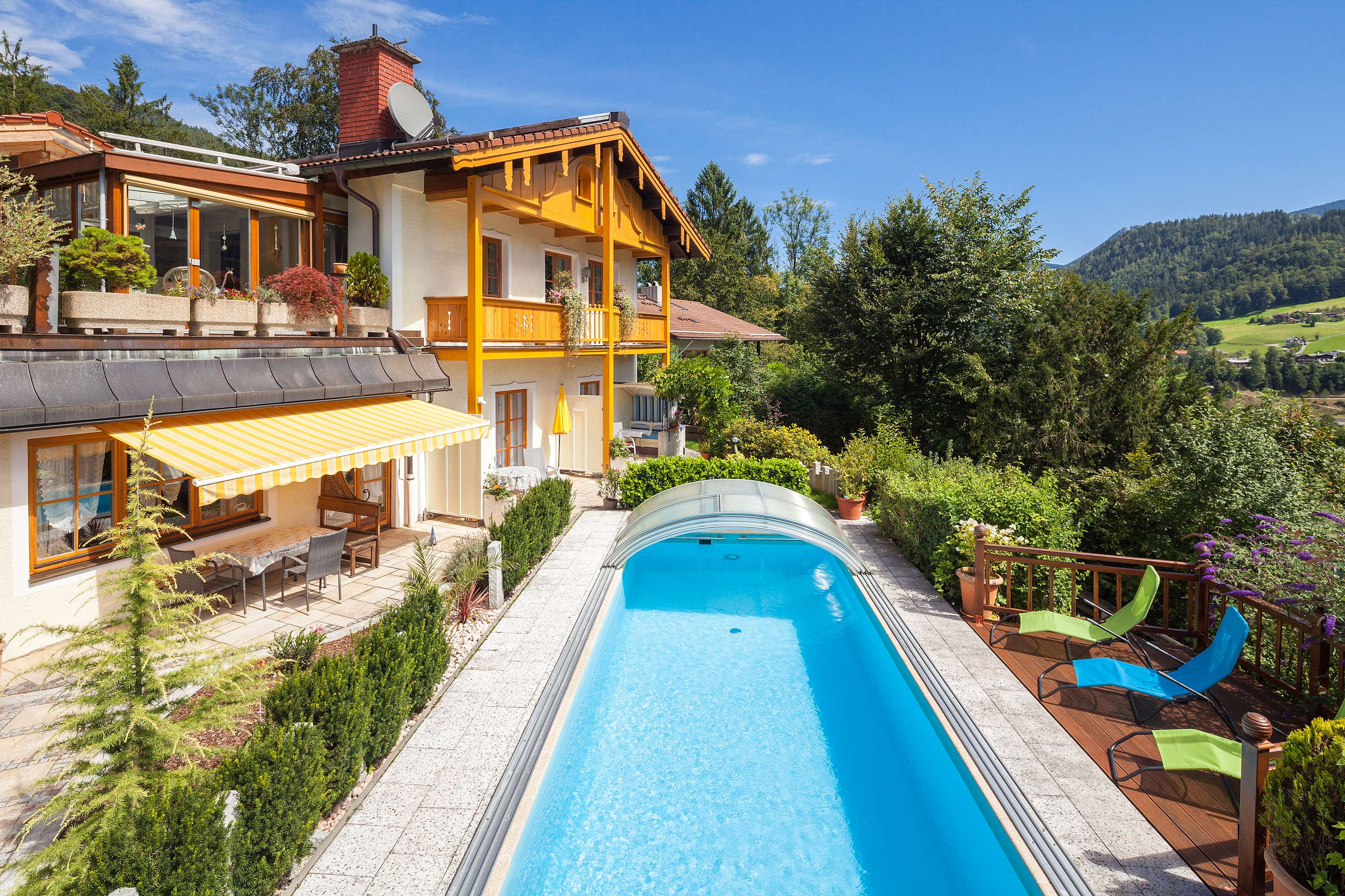 Super Lage, top Aussicht auf die Watzmann-Gruppe, den Jenner und natürlich auf Berchtesgaden selbst. Sehr schöner Garten mit Pool und Terrasse mit Sitzlaube für Frühstück usw. Sehr nette Gastgeber – und Herr Scheifler hat immer lohnenswerte Ausflugstipps parat! Alles in allem wunderbar und sehr zu empfehlen! 👍😊
