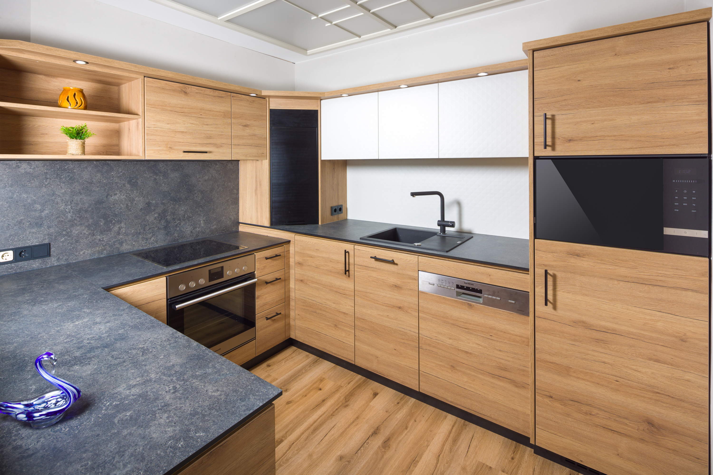 Backofen Essecke Geschirrtücher Kaffeemaschine Kochfeld Kücheneinrichtung Kühlschrank Mikrowelle Spülmaschine Tiefkühlfach Toaster Wasserkocher Wohnküche